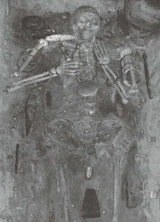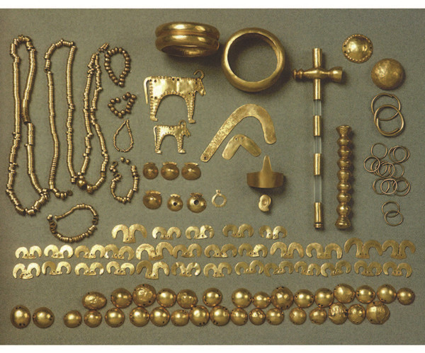 在某个男人(推测是部落首领)墓中,约有1000件黄金物品,总重量超过1.5公斤。包括黄金王权节杖、保护阴茎的金饰品。